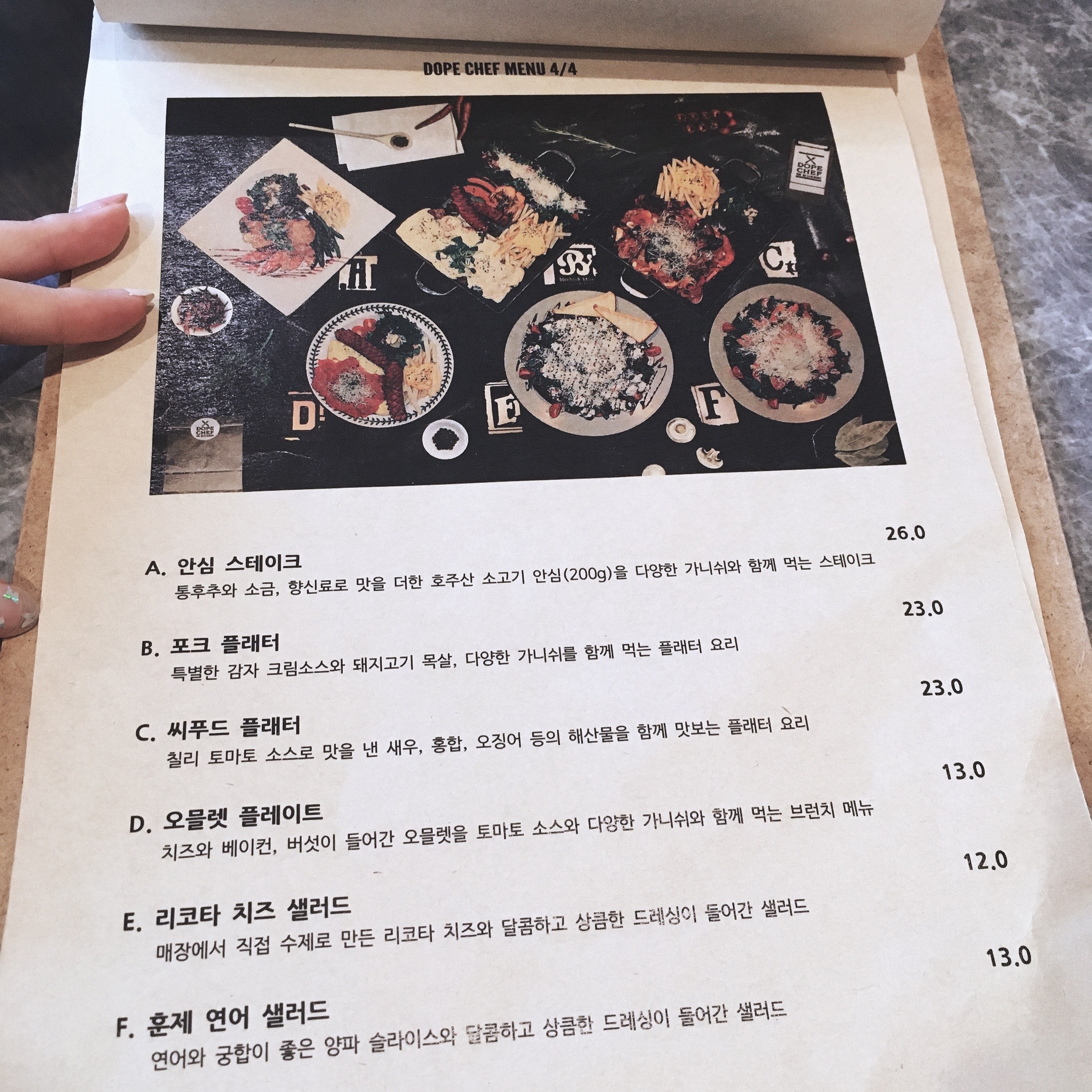 메뉴판을 보니 파스타, 스테이크 등 다양한 종류의 많은 메뉴가 있었다.