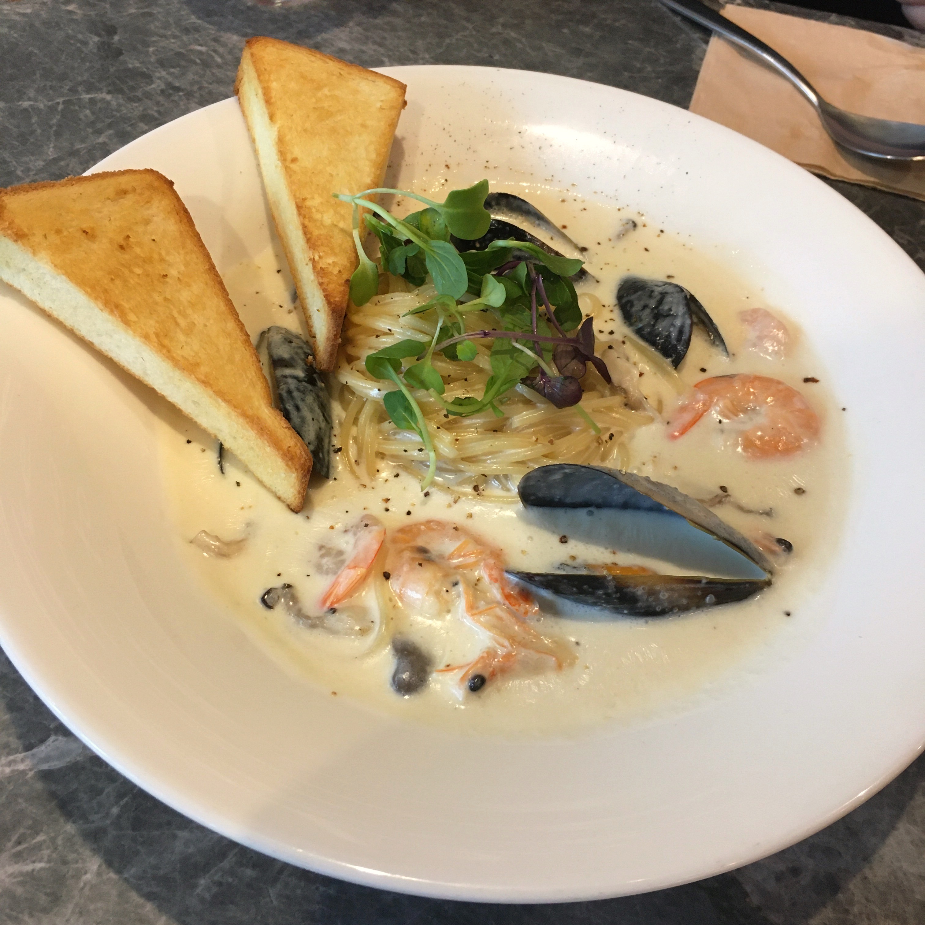 특히 빵이 두툼하고 바삭하게 잘 구워져 있어서 맛있었다. 크림 파스타는 꾸덕꾸덕한 파스타는 아닌데 오히려 빵을 찍어 먹으면 촉촉하고 궁합이 좋게 잘 어울렸다.