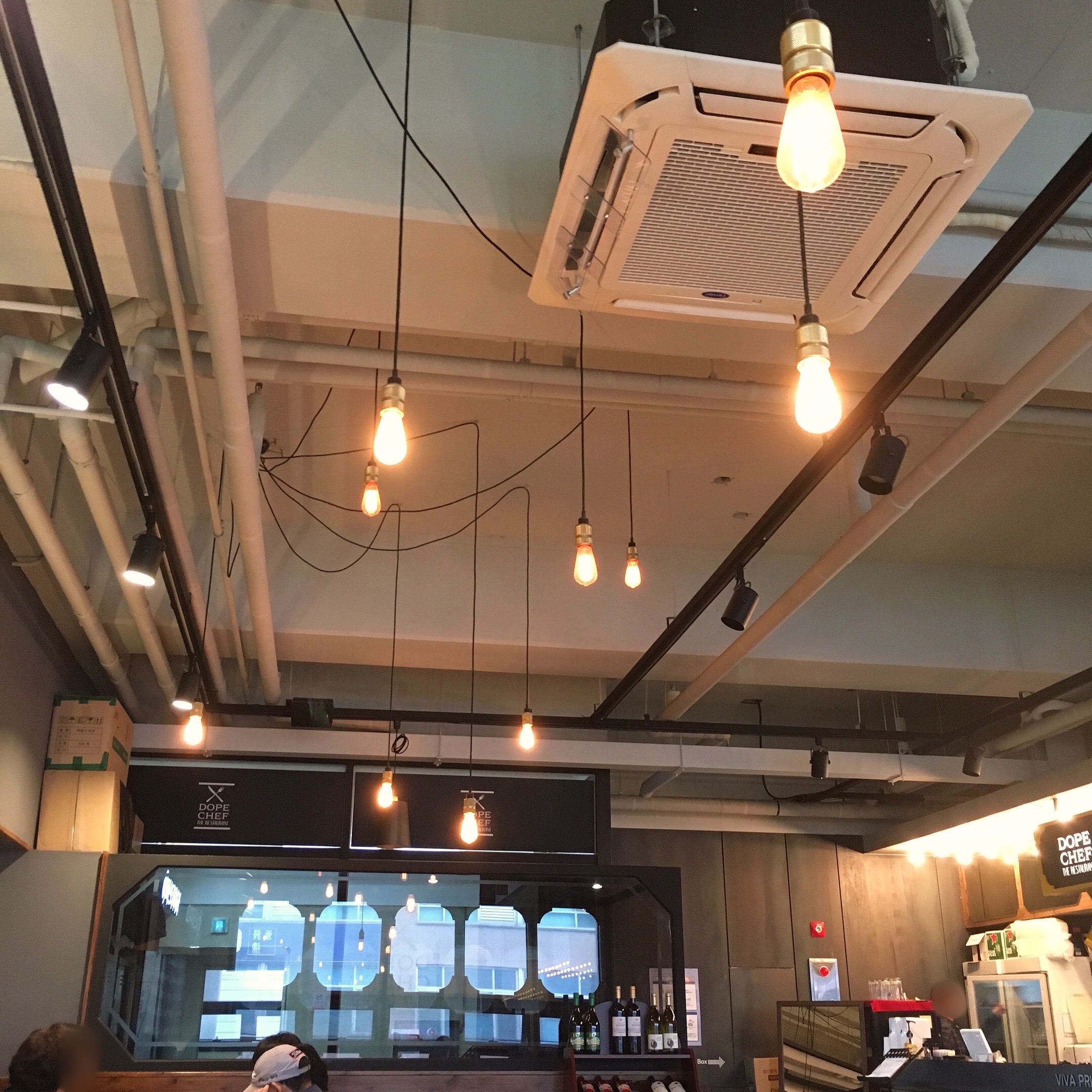 비가 와서 그런지 조명이 드문드문 달려있어서 그런지 분위기가 화사한 편은 아니었지만 오히려 모던한 느낌과 잘 어울렸다.