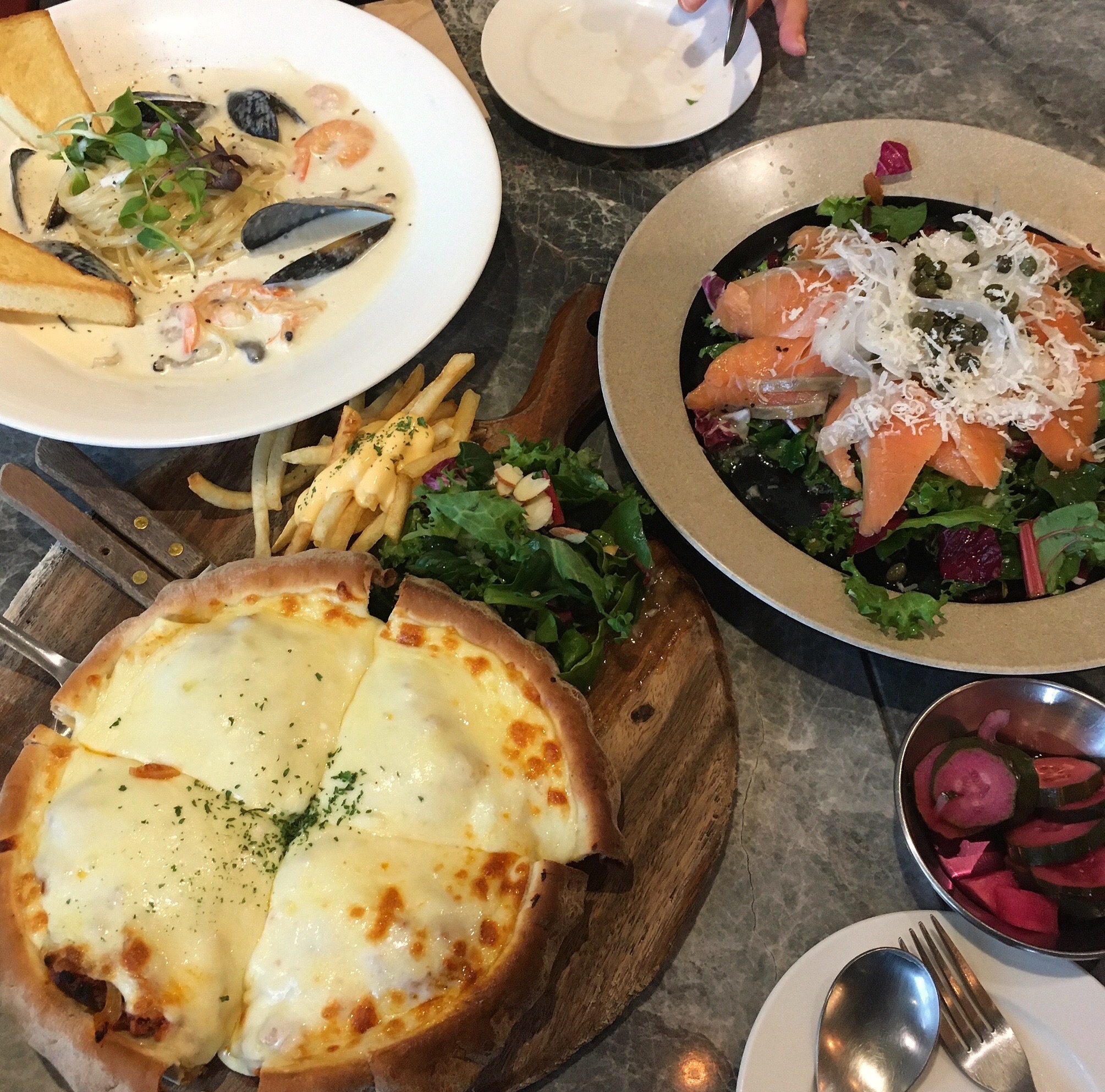 피자 라자냐, 쉬림프 크림 파스타, 훈제 연어 샐러드 총 세 가지 메뉴를 주문하였다.