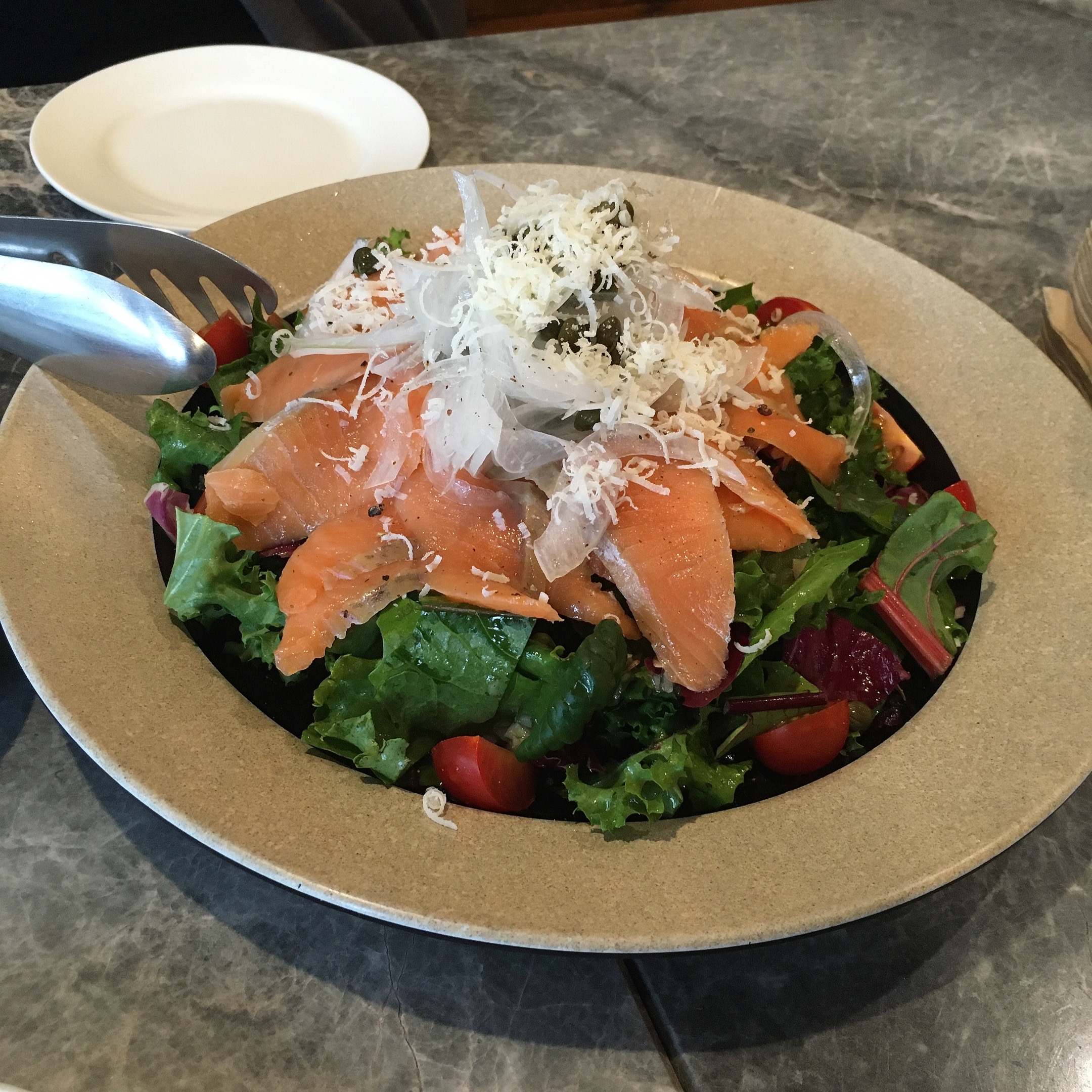 기다리다 보니 첫 메뉴로 훈제 연어 샐러드가 빠르게 나왔다.