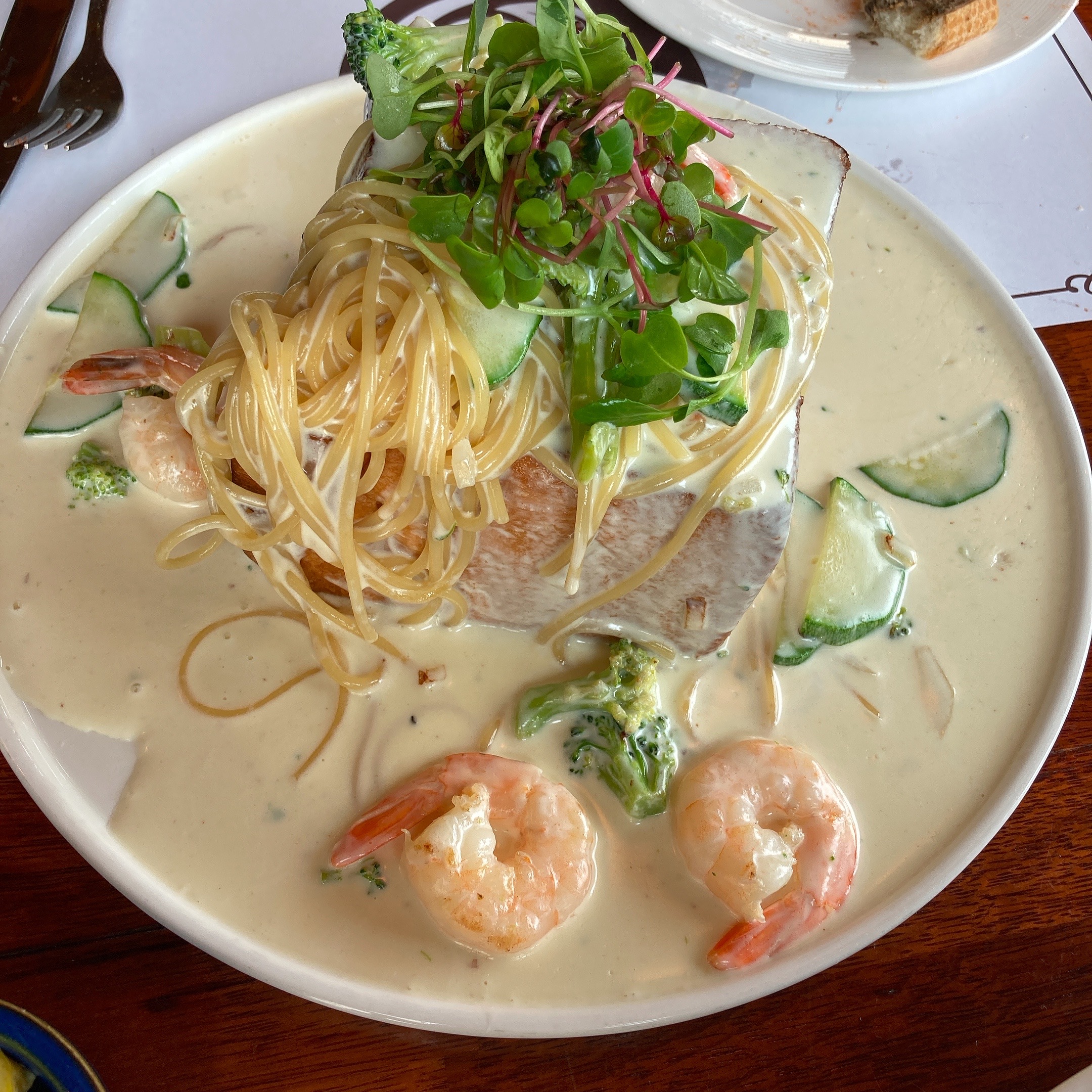 마지막으로 빠네 파스타(20,000), 새우가 많이 들어간 파스타에요. 제 취향은 약간 꾸덕한 파스타가 취향인데 이 친구는 약간 묽은 크림 파스타네요ㅎㅎ