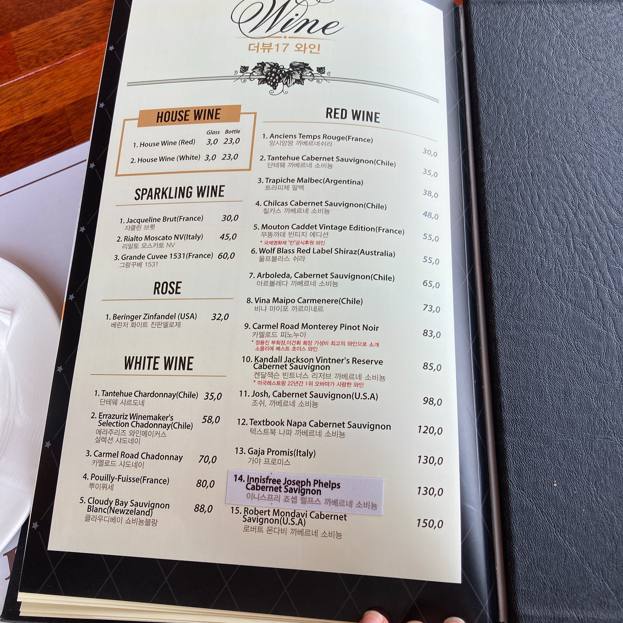 디저트랑 음료종류도 많고, 와인도 종류가 다양하게 있네요.