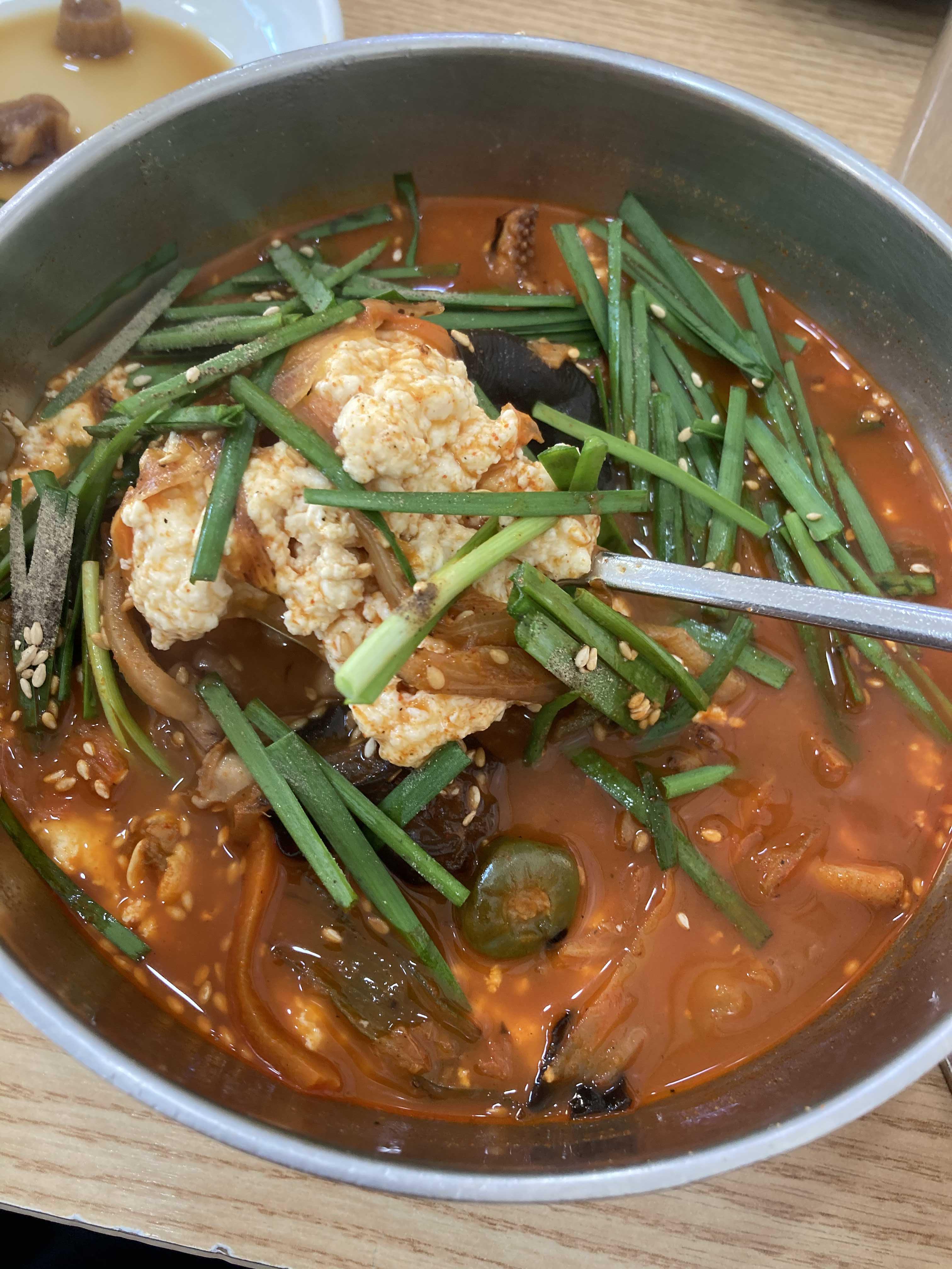 강릉에서 짬뽕 순두부를 먹은건 이번이 두번째인데 그 때 먹었던 집은 깔끔하고 시원한 맛이나는 짬뽕순두부 였다면 이곳은 찐~한 국물에 오징어, 조개 등 해물이 많이들어간 짬뽕 느낌이다.