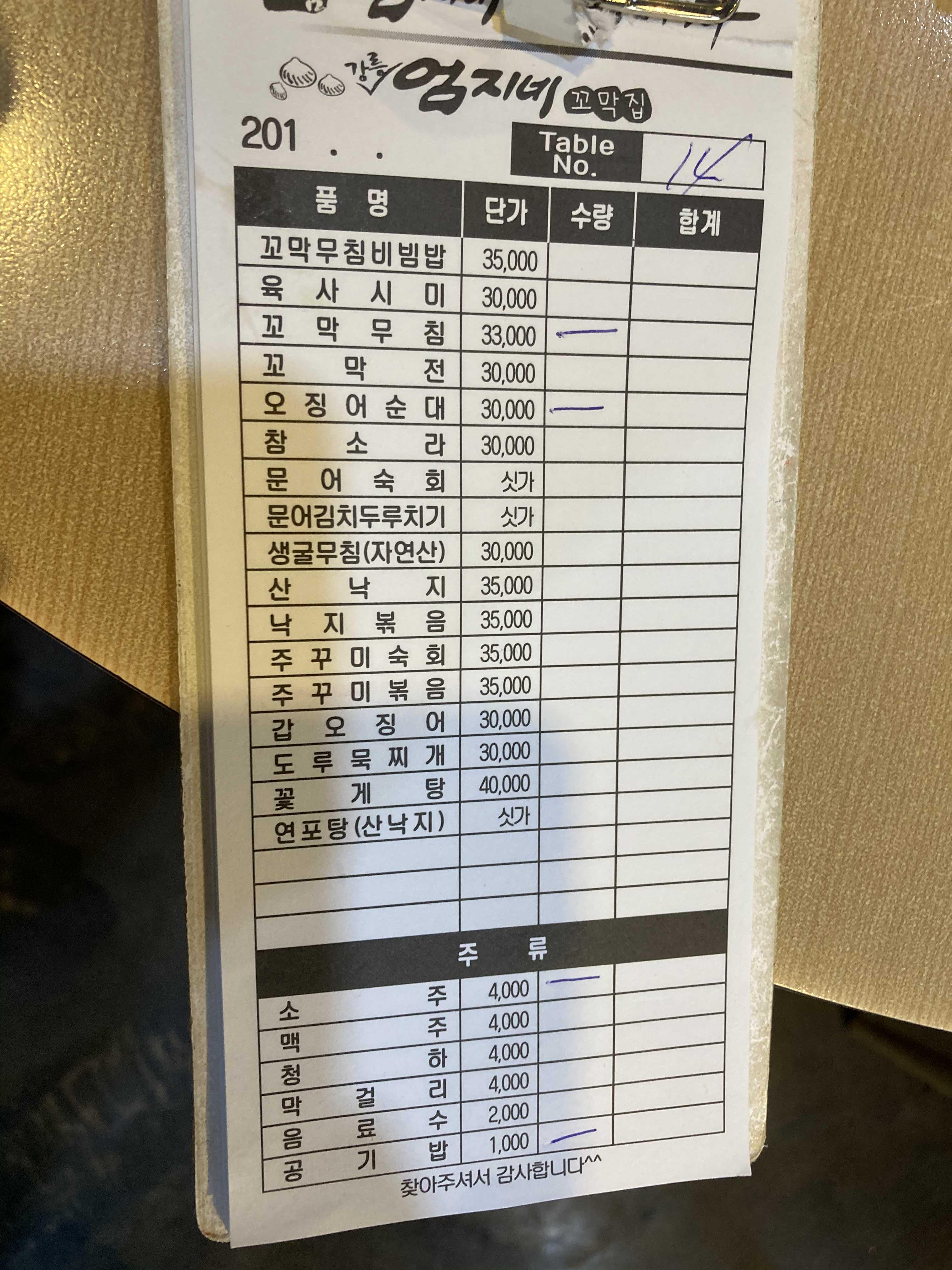 원래 목표는 육사시미, 꼬막, 오징어 순대였는데 사진에서 보이다시피.. 양이 정말 많다.