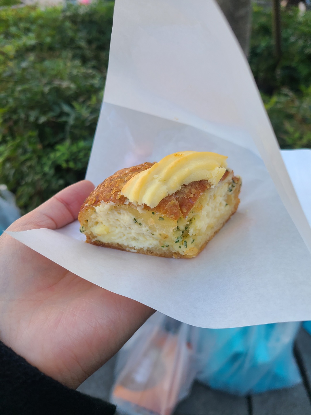 또 강릉시장에서 유명한 육쪽마늘빵? 은 이미 품절이라 구매는 못하였고.. 시식을 주시길래 먹어보니 나름 마늘향도 많이나고 맛있었다.