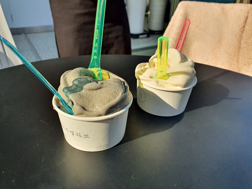 기본 순두부 젤라또랑, 흑임자 젤라또를 구입하였다.