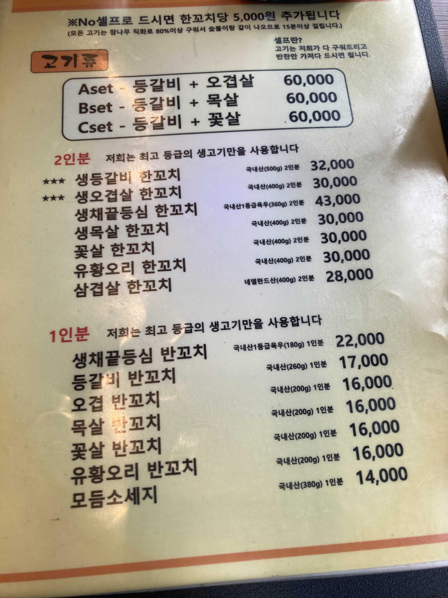 3인팟이였기 때문에 한꼬치가 2인분이라해서 등갈비+오겹살 세트를 시켰다.
