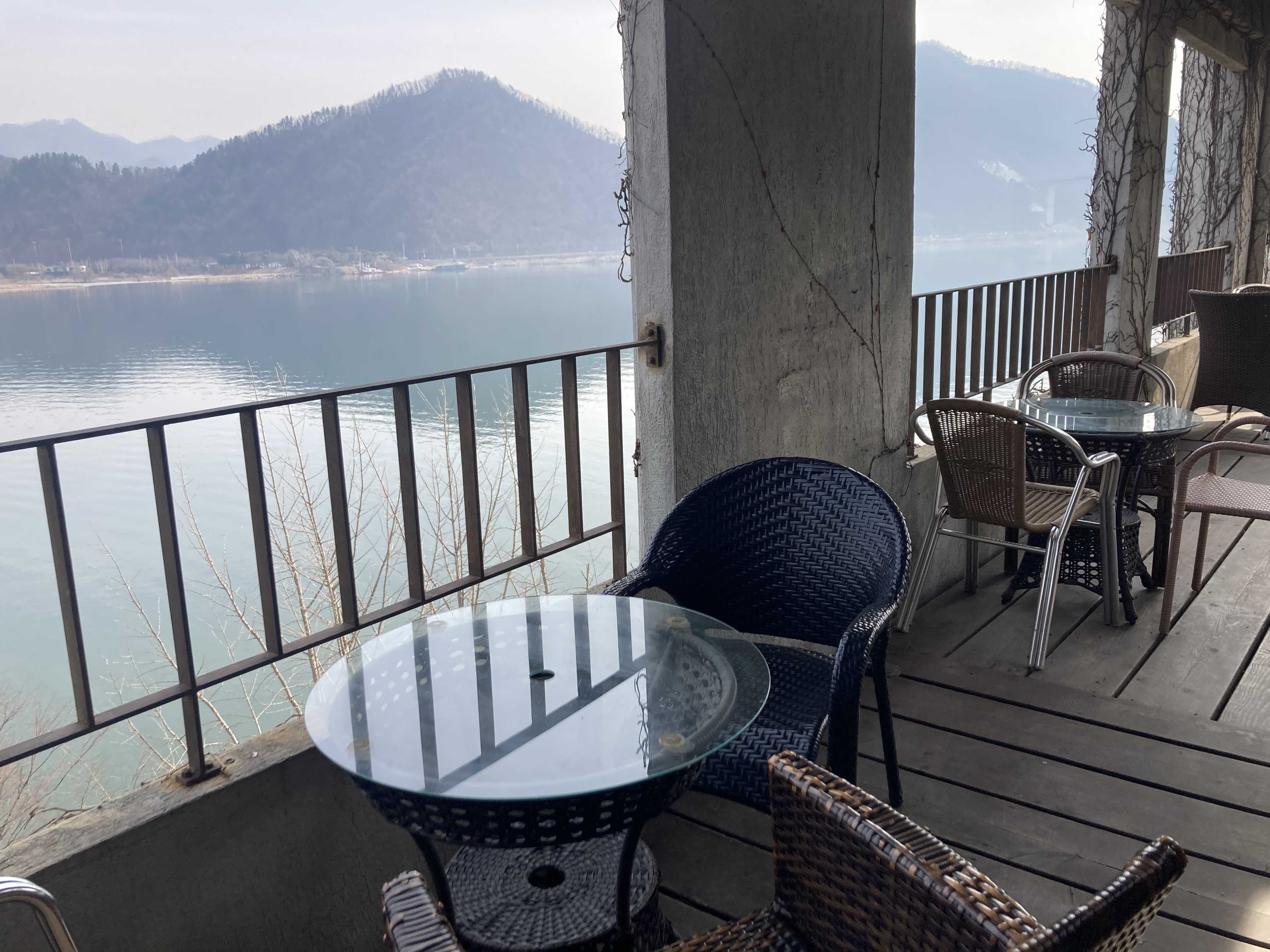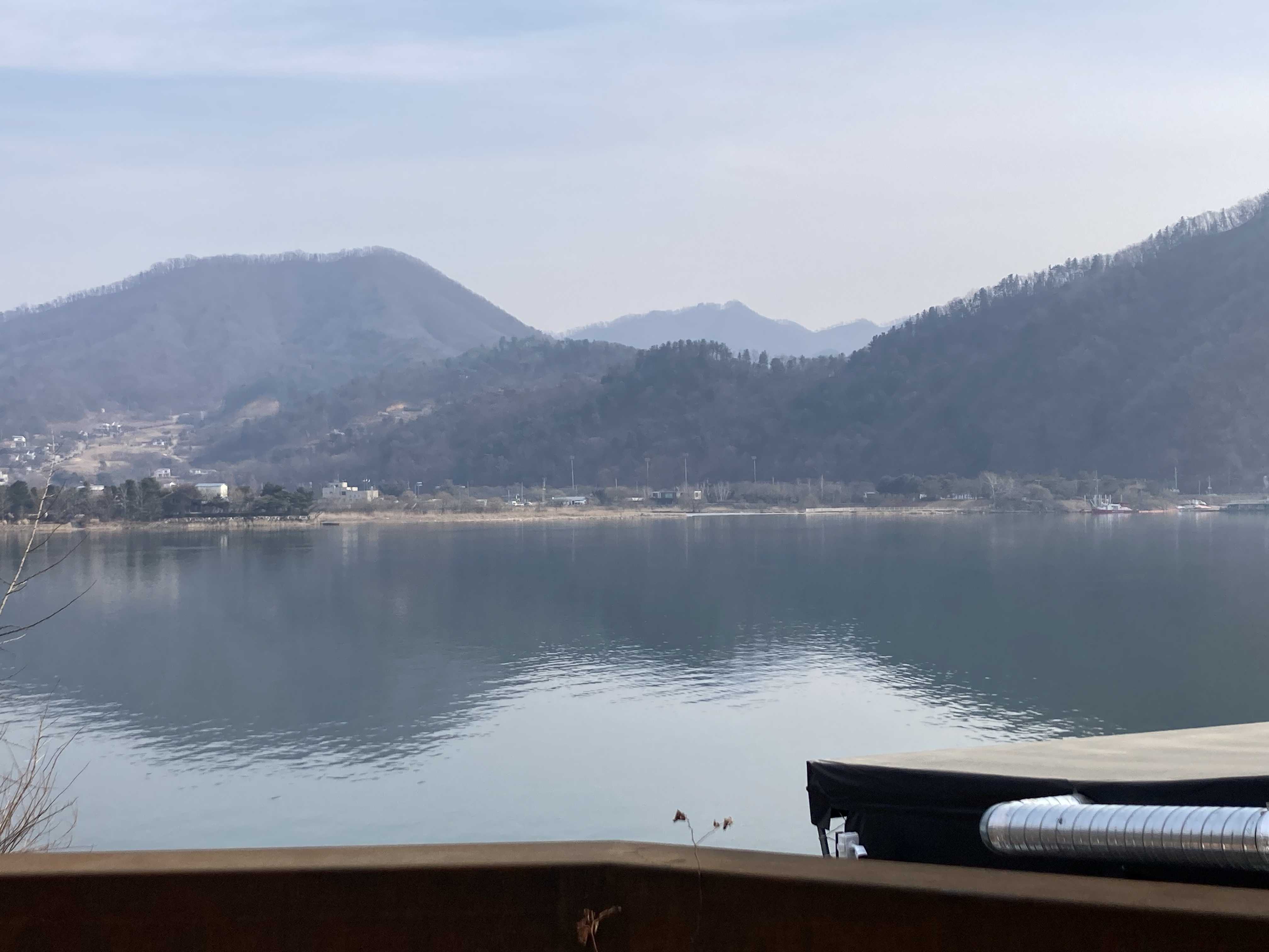 북한강 뷰 자리는 거의 없어서 적당한 자리에 앉았다.