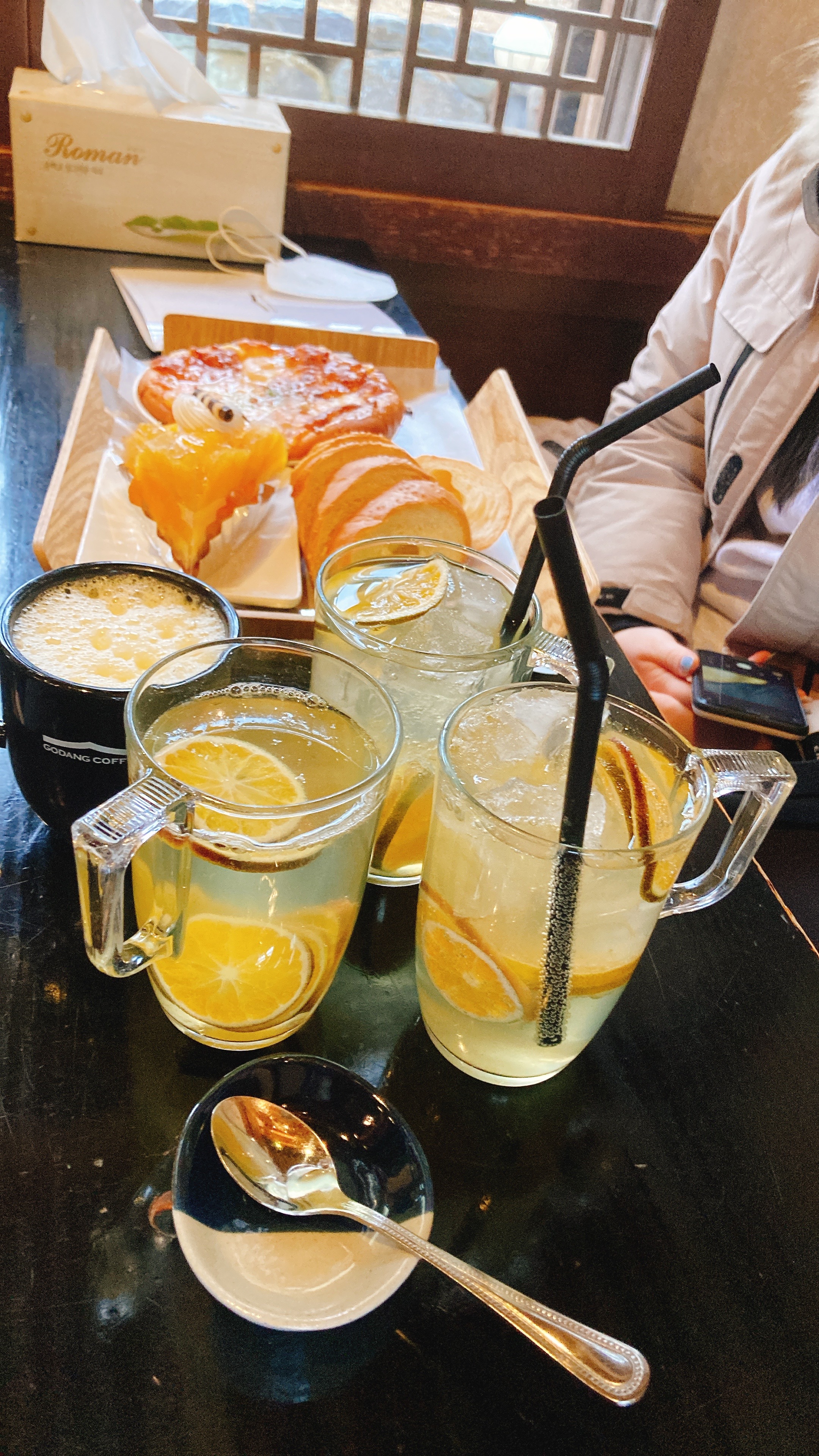 여기서 음료도 먹을 수 있긴한데, 자리잡으면 한옥 안쪽으로는 자리 이동이 불가하다고 한다.
