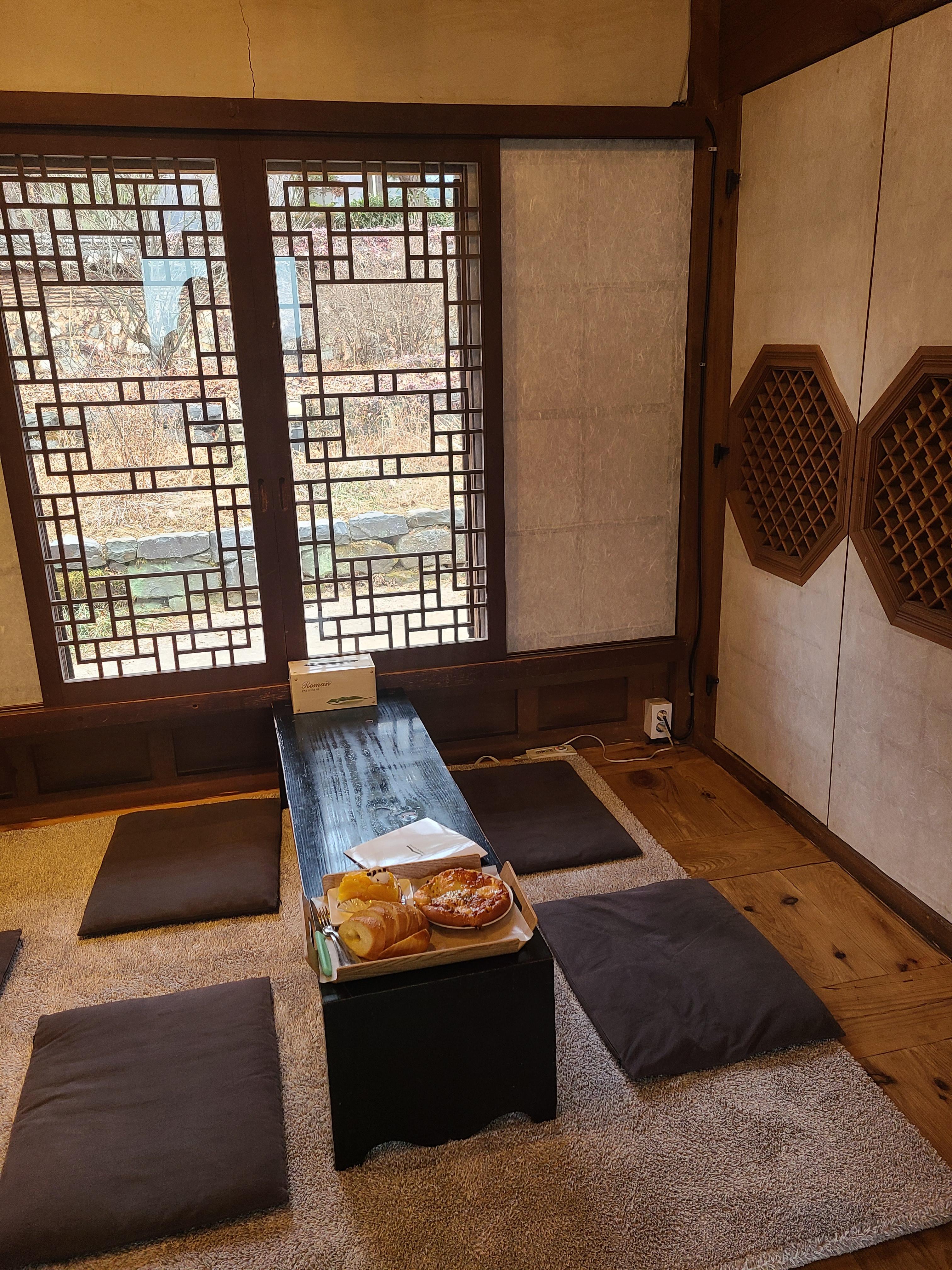 우리가 안내받은 자리는 이런 좌식공간이였다. 약간 옛날 할머니집 느낌도 나고 방이 따듯해서 좋았다.