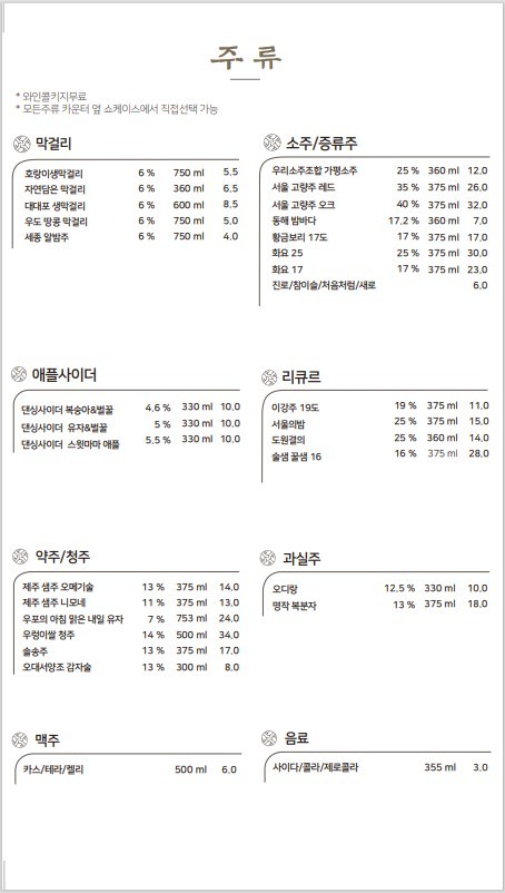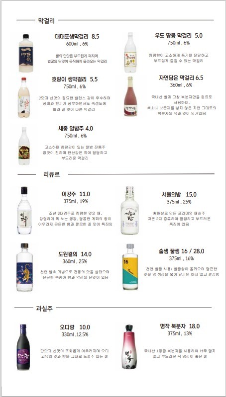 메뉴도 다양한 편인데 특히 술 종류가 엄청 많다. 매장에서도 따로 판매도 하고 있음